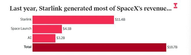 根据The Information获取的未披露财务数据,SpaceX总营收约为187亿美元,但内部各业务部门呈现出冰火两重天的局面。